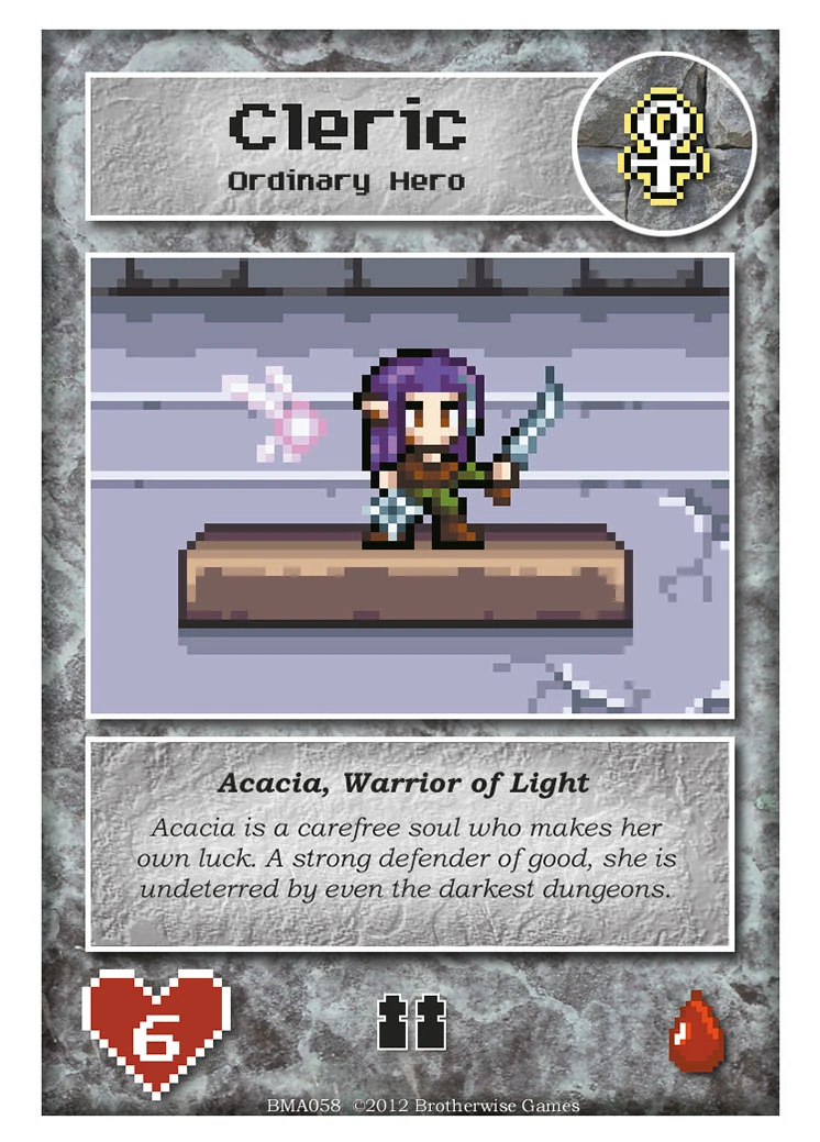 "Acacia is a carefree soul who makes her own luck. A strong defender of good, she is undeterred by even the darkest dungeons."